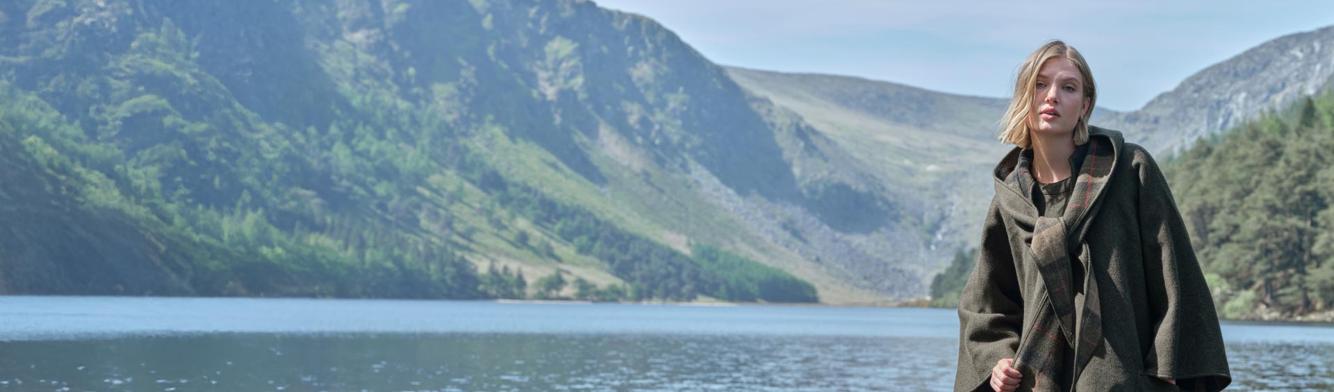 Wrap yourself in the luxury of our Women's Classic Wool & Cashmere Irish Cape or show your Irish heritage with our beautifully crafted Merino Wool Pocket Shawl.
