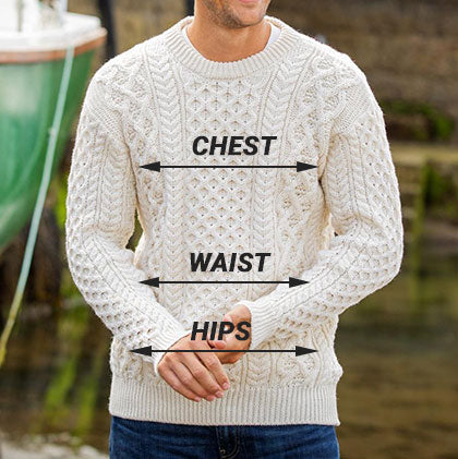 Mens Blasket Honeycomb Stitch Aran Sweater - Size Chart
