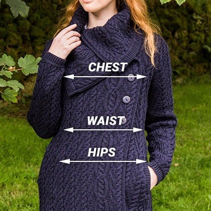 Ladies Aran Wide Collared Button Coat - Size Chart