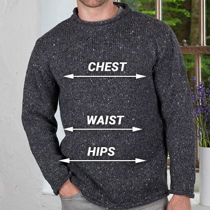 Donegal Curl Neck Aran Sweater - Size Chart