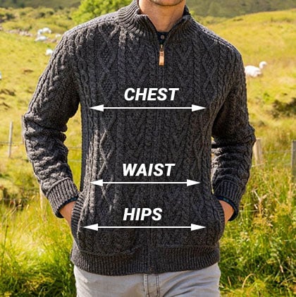 Mens Full Zip Aran Cardigan - Size Chart