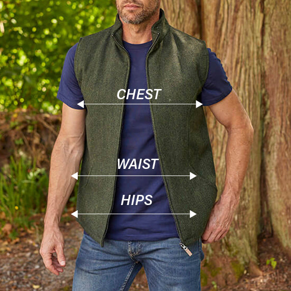 Men's Herringbone Irish Windbreaker Vest- Size Chart