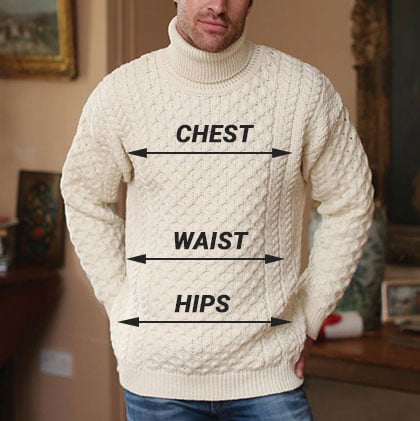 In versions for both him and her, this stunning Aran turtleneck sweater features an authentic Aran stitch design with the lucky honeycomb in the main body, beautifully trimmed at the sides with the iconic Aran cable.