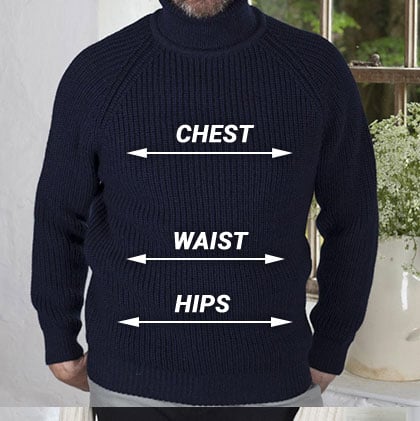 Mens Roll Neck Fishermans Irish Sweater - Size Chart