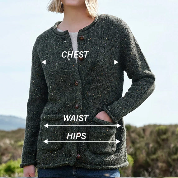 Women's Button-Up Irish Wool Cardigan Sweater - Size Chart