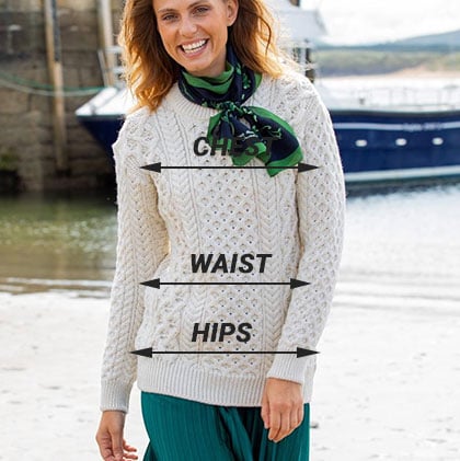 Donegal Merino Blasket Honeycomb Stitch Aran Sweater - Size Chart